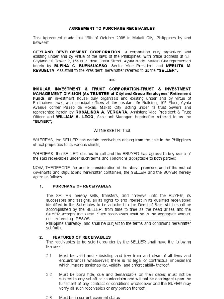 Check out how easy it is to complete and esign documents online using fillable templates and a powerful editor. Receivables purchase agreements deal with accounts receivable or when a business bills out for goods and. A company may choose to sell all of its receivables under a single agreement, or it may choose to sell an undivided interest in its.