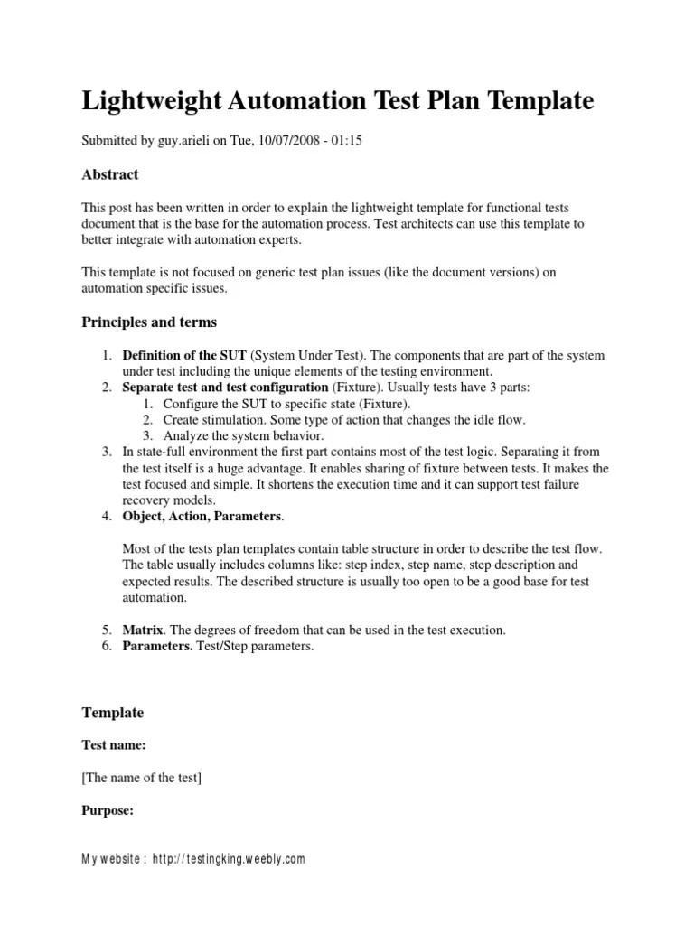 Web what is test plan template? Web a test plan is a comprehensive document outlining the strategy, scope, and objectives of software testing. Web in the test plans web portal, open the test plan and select a test suite that contains the automated tests. Document the test name and. From an automation test plan template for selenium to a.