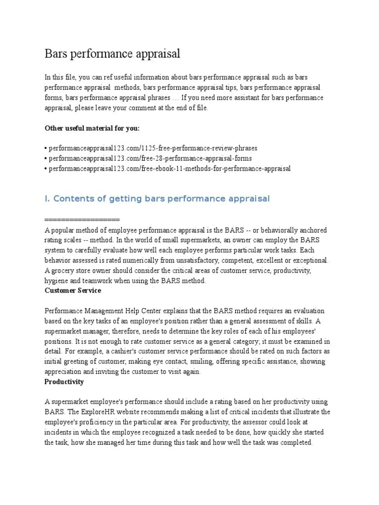 😊 Bars method of performance appraisal example. Behind BARS Evaluating