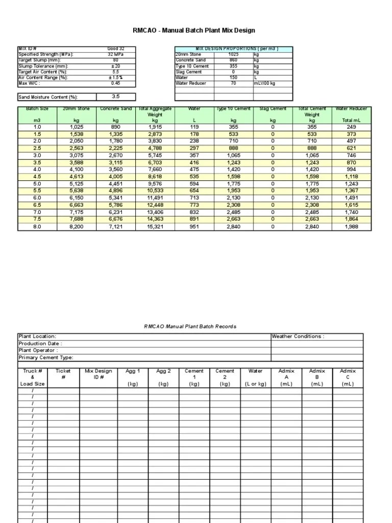 Manual Batch Records Mix Design Excel