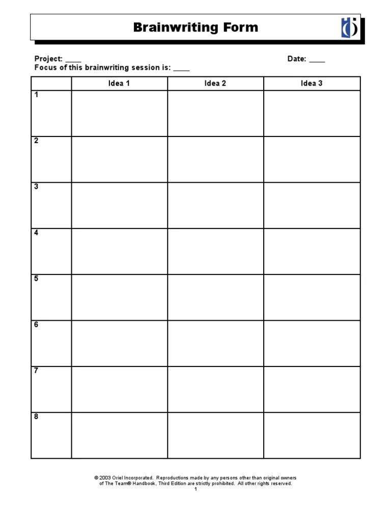 Open this template to view a. Use this brainwriting template for brainstorming and ideation with your team. Bring structure to a brainstorm that allows for quieter voices to be heard. First, the moderator should email everyone an electronic copy of the brainwriting template.
