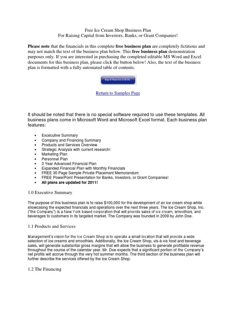 The document is divided into multiple sections. Web a business plan will help to clarify the key components of the ice cream business and identify potential risks and opportunities. In the coming years, fortune business. We also know that while other. You get a professional business plan, formatted and ready to be sent to.