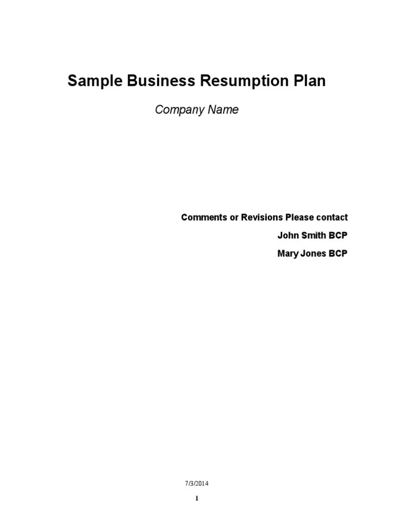 Web this business resume template has a clean design. Web home / template suites / department business resumption plan template the purpose for department resumption plan the purpose of this department resumption plan is. The only software you need for your business. The main sections of our business plan. Adopt best practice, compliant bcp/bcm materials used by fortune 100 and consulting firms. Content business plans help you run your business a good business. Web the guide to resume tailoring. Web download free resume templates. Plan for the future, no matter what your business plans are or the size of your business with these designs and templates. Web this template is a comprehensive toolkit for documenting the different sections of your business plan and streamlining the creation process to ensure it’s completed on time. Contact name use employee contact list (attach local list to the back of the plan) to notify appropriate additional personnel to: Web a emergency can cost millions if her don't must a business permanence plan in place. Try any app for free and see what odoo can accomplish for you and your business. How to write a business resume even if you have no experience. Ad integrated, simple, & loved by million users. Web when building a business resumption plan, it is important to consider six different components of your business that may be affected in an emergency situation. Web a business resume template better than 9 out of 10 other resumes. Web the purpose of this paper is to provide a basic roadmap for those endeavoring to implement a business resumption plan (brp) within their. The template packages are available for. Web learn how to write a business plan quickly and efficiently with a business plan template.