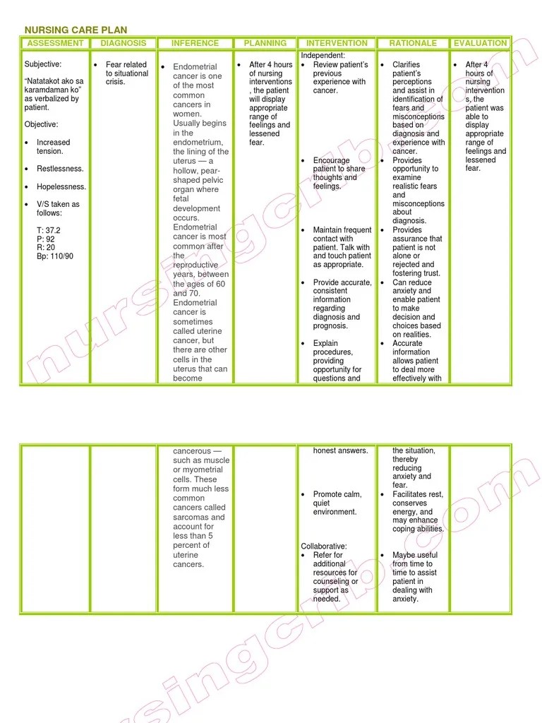 Nursing Care Plan Endometrial Cancer Cancer Nursing