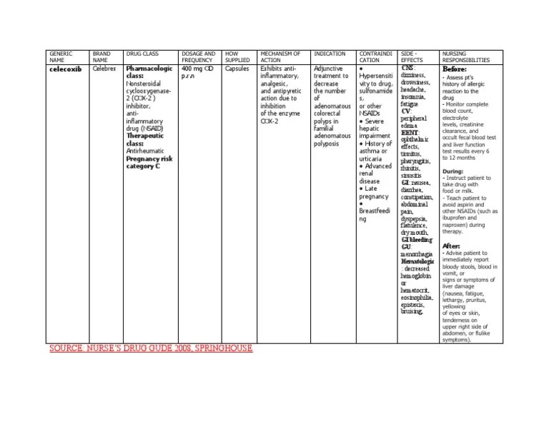 Medication margareth de oliveira lima student name_____ celecoxib (celebrex) medication_____. Tell patient to take celecoxib exactly as prescribed. Medication student name celecoxib medication review. Ati system disorder template heart failure.