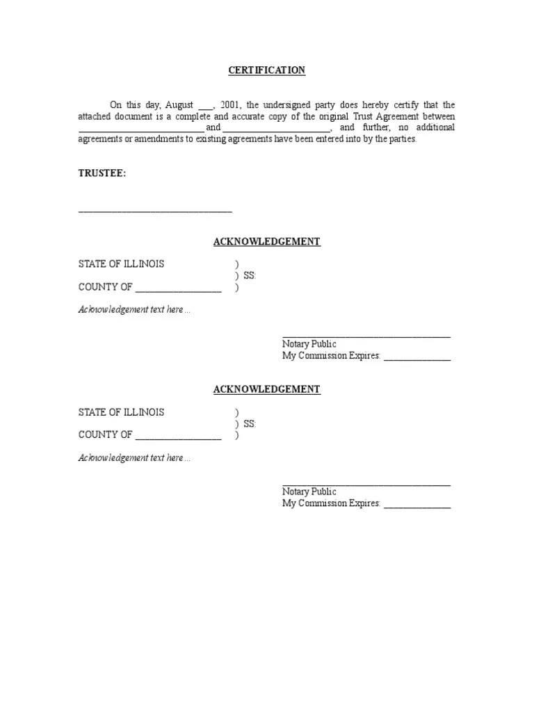 I, jon smith (“affiant”), being duly sworn, deposes. Get arkansas certificate of declaration of trust templates developed by professional legal representatives and prevent the costly and. Web in simple terms a trust certificate is a document which is issued by the trust bodies, to the trustees as an evidence of ownership in the form of certificate. Easily customize your certification of living trust.