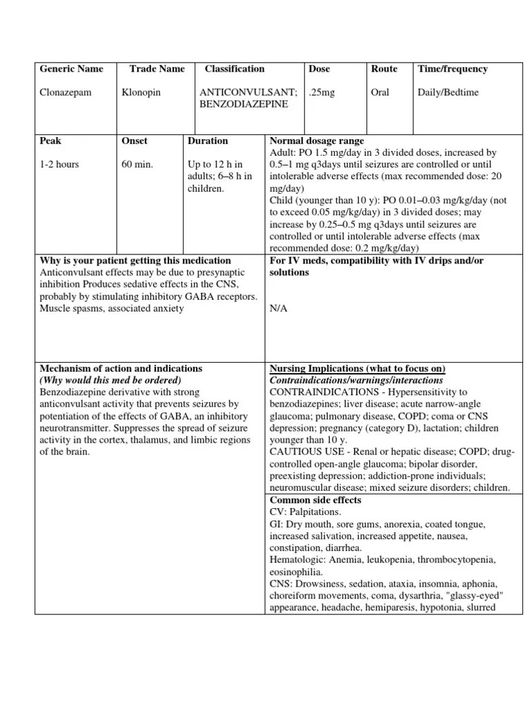 Clonazepam medication template ACTIVE LEARNING TEMPLATES THERAPEUTIC