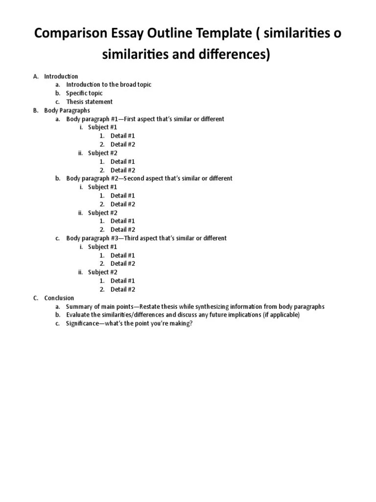 Following Is An Outline For Compare And Contrast Essay:.