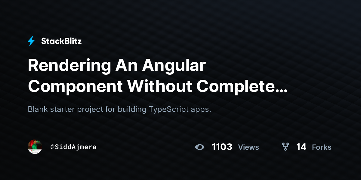 Remove the import that refers to the component from app.module.ts file. Also remove the component from. Web if you are working with angular and need to refresh a component without navigation on another component without using window.location.reload () or. Web component without template starter project for angular apps that exports to the angular cli 3.2k view s 78 fork s.