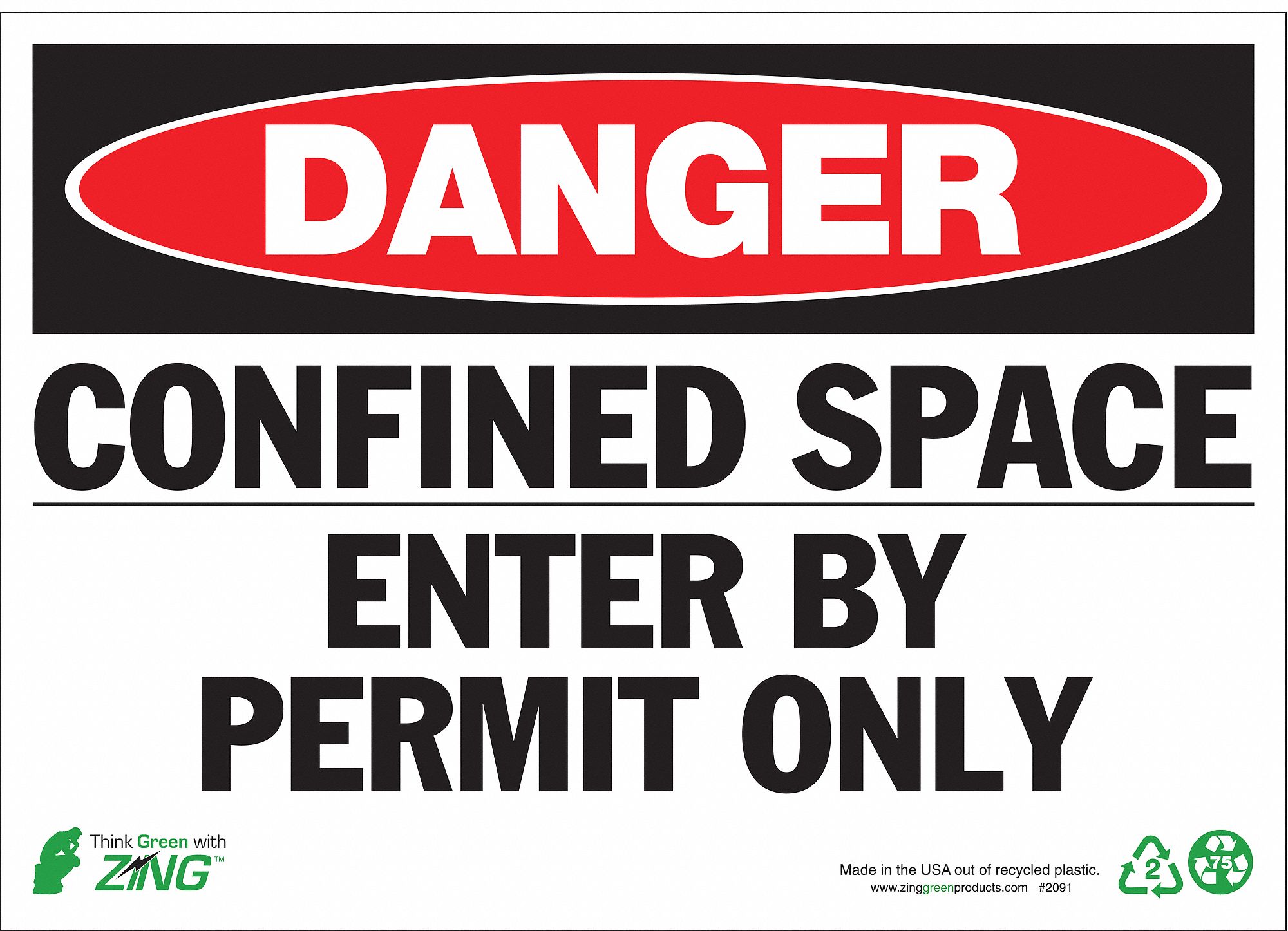 ZING Danger Sign, Confined Space Enter By Permit Only, Header Danger