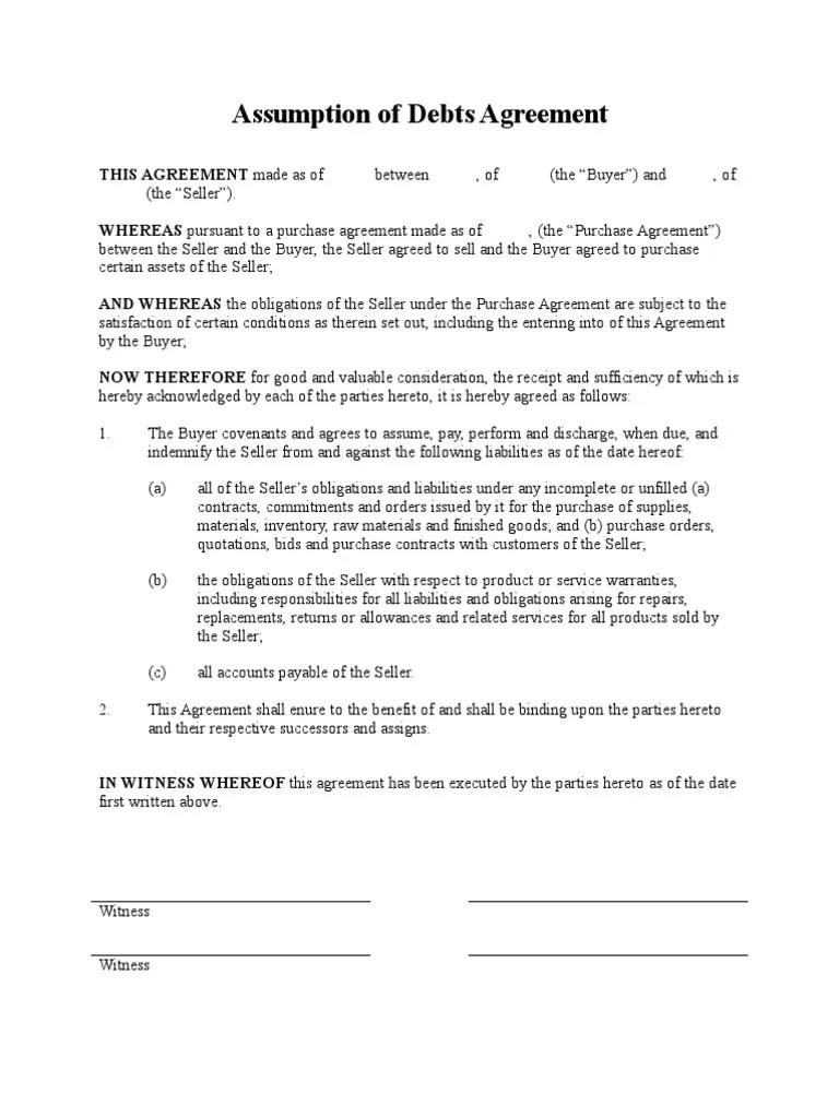 Web debt agreement templates create an outline of the specific contract agreed upon by a debtor and creditor with template.net’s free sample debt agreement templates. This debt assignment and assumption agreement (agreement) is made by and between the following parties:. Ad create a custom loan contract to ensure payment within a specified period. Web by the investor of the subordinated debt pursuant to this letter agreement and the securities purchase agreement on the terms specified on schedule a hereto.