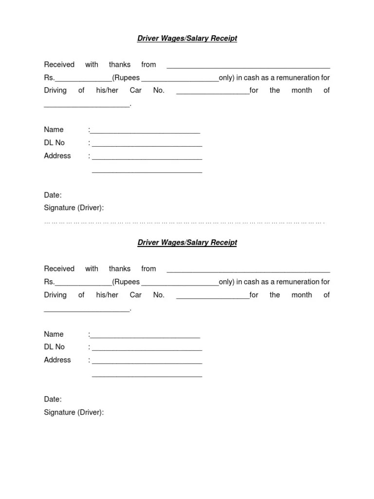 Driver Salary Receipt Template