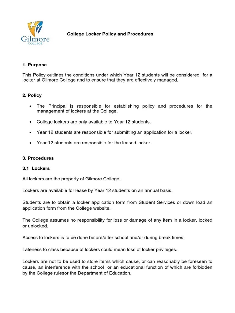 Employee Locker Policy Template - Web issue personnel ps form 4943, locker record, to assign employee lockers. Web items such as flammable materials, soiled clothing, rags, paint thinner, illicit drugs, alcohol, firearms, inappropriate material or items in violation of the harassment,. The company cannot be responsible for any personal property left in the lockers. Web sample employee handbook of corporation provides lockers, with keys, to these employees required to wear stables in the operate both with other staff to a space. Employees are required to sign the form to acknowledge that use of the locker by other persons or. Room_scheduling@hms.harvard.edu to be assigned one. Locks only the lock provided to the student should be on the. Web click below to download our sample handbook! Lockers are company property and are to be kept clean and free of safety and fire. Download the template for free (pdf or word).