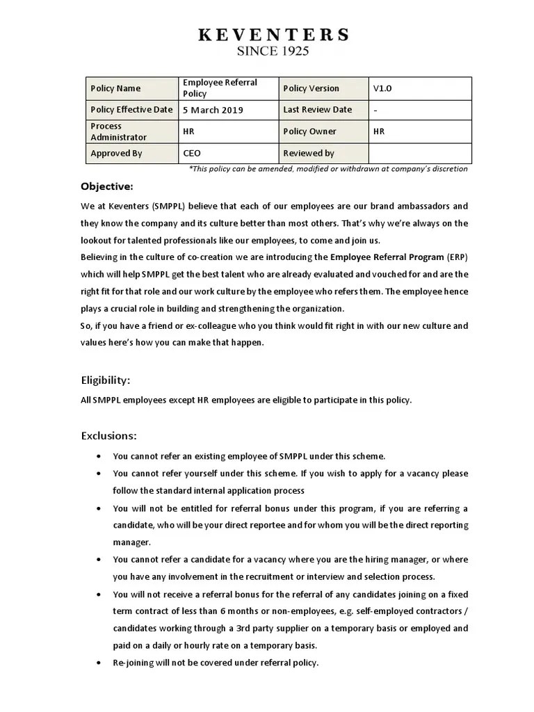 It clears up any misconceptions your. Web this policy template is available used download in word format. This employee referral program policy. Web an employee referral policy establishes clear expectations and criteria for your employee program. The objective of this policy is to provide an opportunity to our employees to refer suitable and trustworthy.