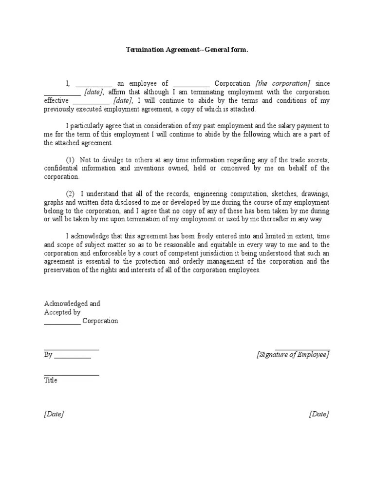 Web employee agrees not to start, join or cause to be started a lawsuit or any action arising from any alleged unlawful conduct relating to his employment with the employer up. Every company must deal with the terminationof an employee at some point. Web severance (employment separation) agreement. Web a termination agreement is a useful tool mostly for employers because it ensures their release of all obligations outlined in the employment contract and creates.