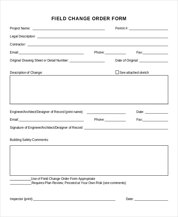 Ad typeforms are more engaging, so you get more responses and better data. The field change order form is completed and signed by the engineer, architect or designer of record or their designee. The first section of the change order template should briefly describe the original project deliverable and the proposed changes. Join thousands who are already using skynova and.