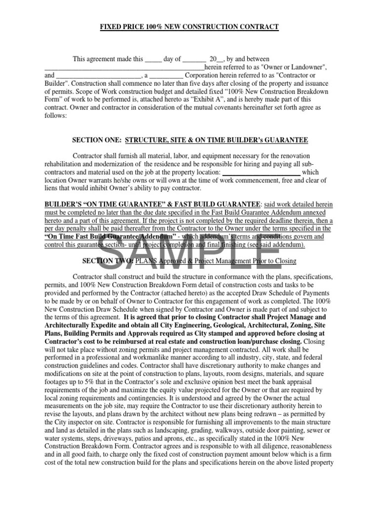Costum Fixed Price Construction Contract Template Doc Example Riccda