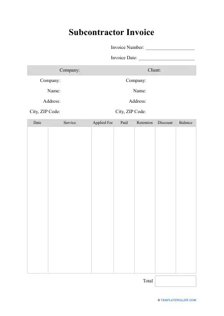 Subcontractor Invoice Template Download Printable PDF Templateroller