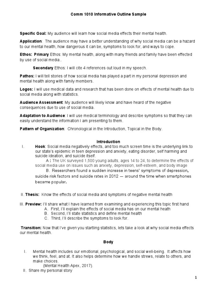 Select the sample outlines pdf in the media. After listening to my speech, my audience will know or understand ( select know or. Web several aspects must be considered in writing a sentence outline. Web full sentence outlines are often accompanied with an apa reference list on a separate page. Web an essay outline is a way of planning the.