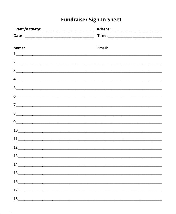 Fundraising Sign Up Sheet Template Sheet
