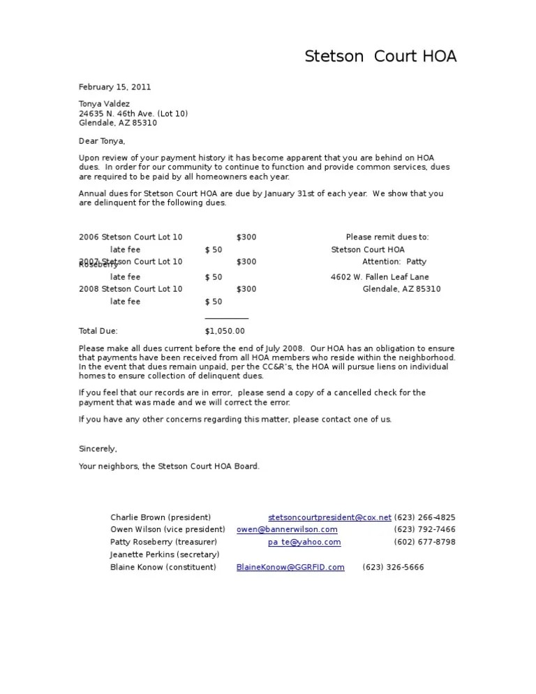 Here Is A Free Sample Template From Hoa Management (.Com).