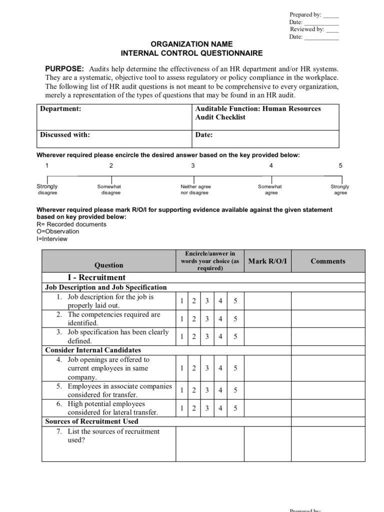 Printable Human Resources Audit Checklist Template Doc Sample in 2021