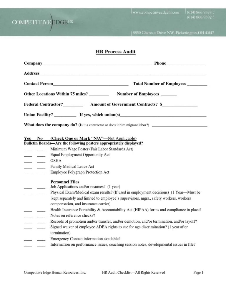 Web the standard hr audit checklist template is a valuable resource for evaluating your organization's human resources practices. Web hr forms & checklists why start from scratch on your hr forms? Web we have provided a very basic sample hr audit checklist as a jumping off point, highlighting three areas of concern for a potential audit and some simple audit.