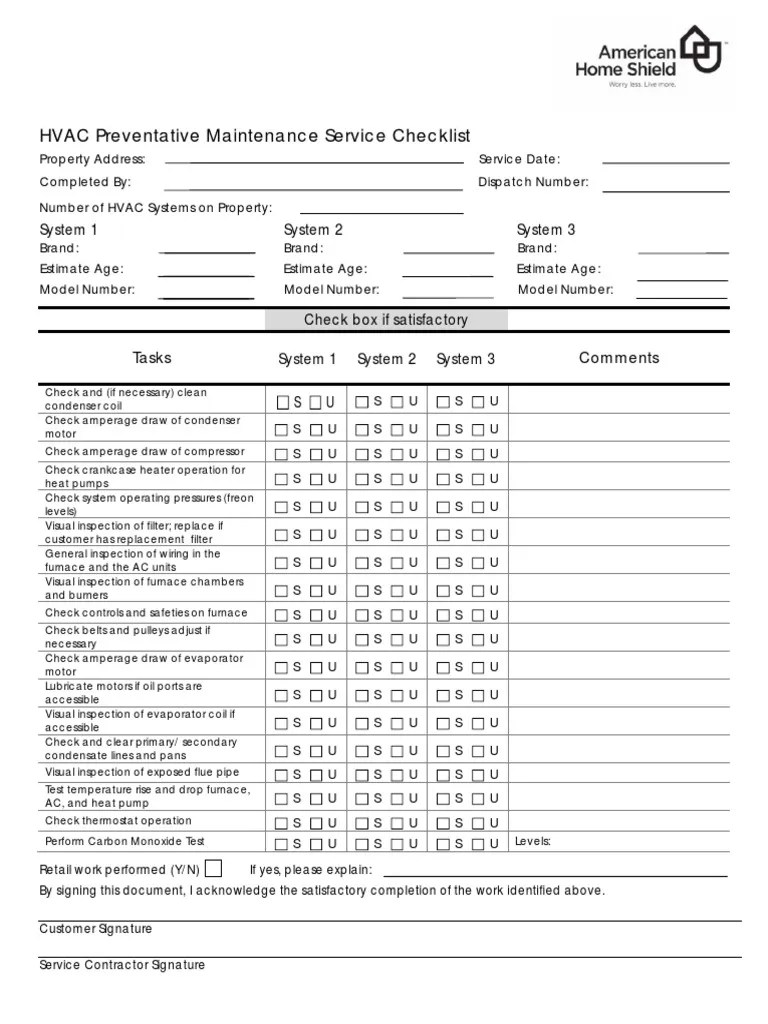 Printable Hvac Maintenance Checklist Pdf Printable World Holiday