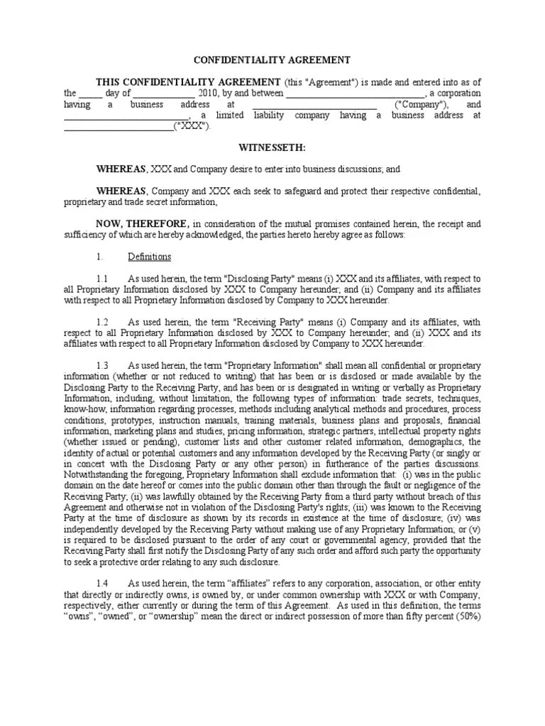 NDA Template 1 Trade Secret Non Disclosure Agreement