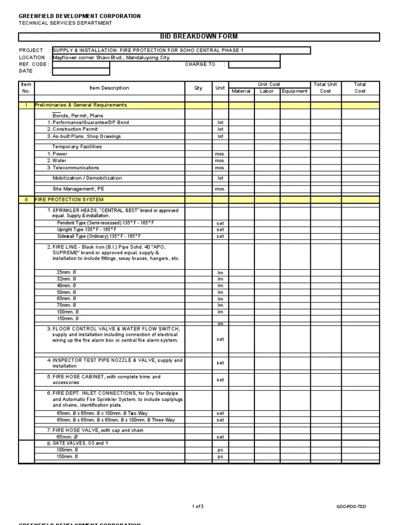 Soho Fire Protection_Bid Form Fire Sprinkler System Valve