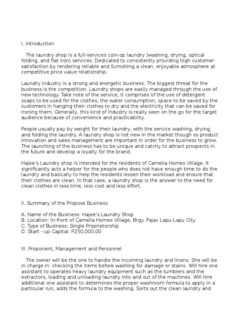 A business plan is a necessary tool for any entrepreneur who wants to open a laundromat. Among other things, it outlines your business concept, identifies your target customers,. You can download this document in word form and use it as a foundation for your own business plan. The business is managed by the owner, who has extensive leadership and management skills as well as an innovative and creative character.