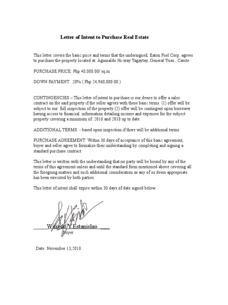 Letter Of Intent To Purchase Real Estate Check more at https