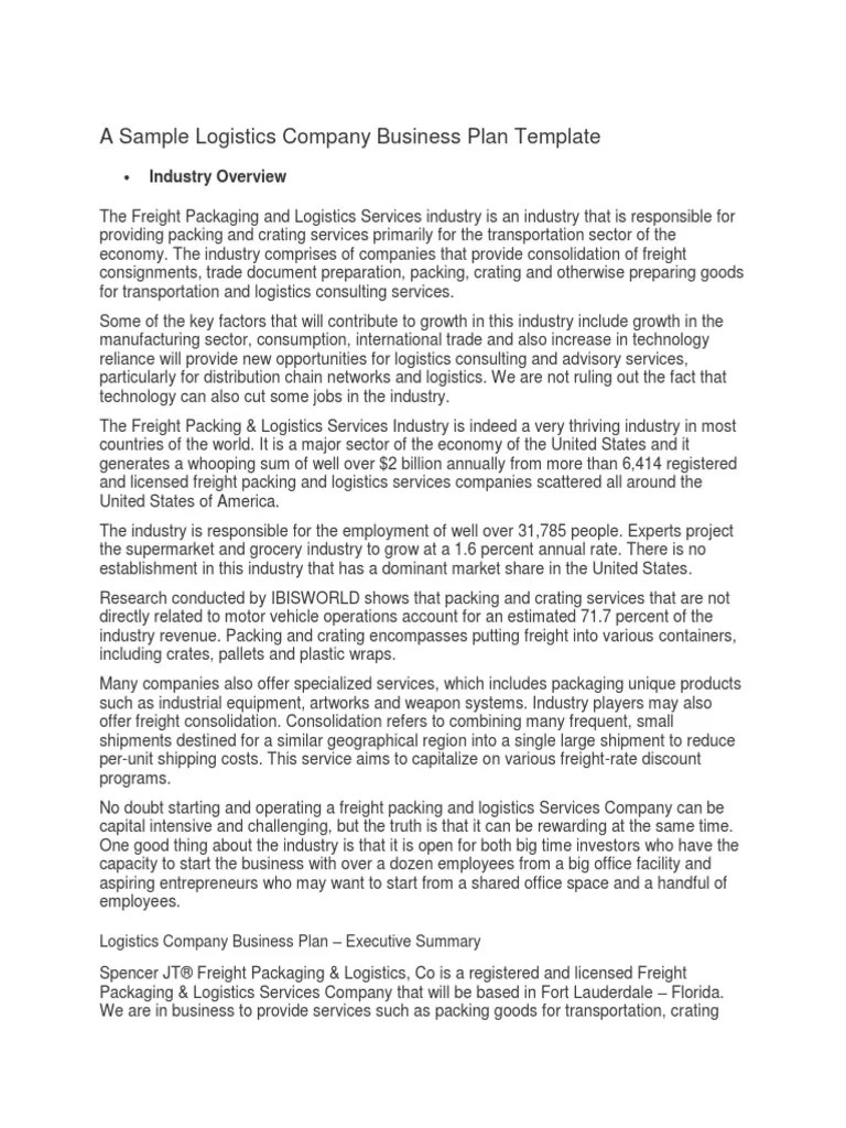 A Sample Logistics Company Business Plan Template Logistics Cargo
