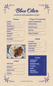 Simple Mediterranean Menu Design Template by MustHaveMenus