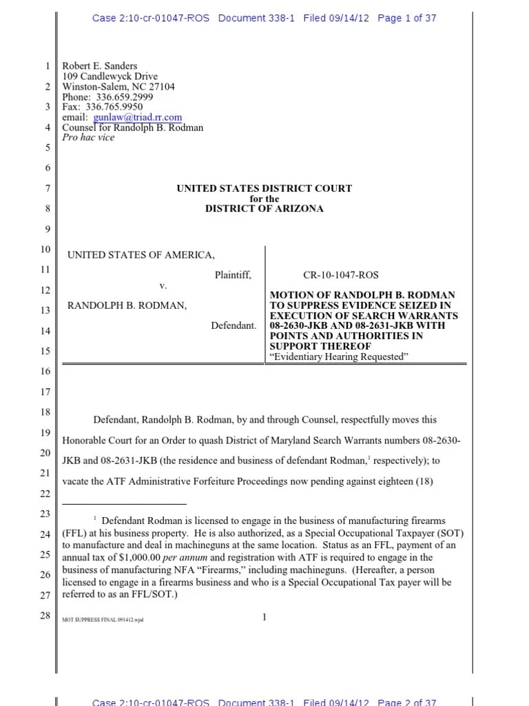 Motion to Suppress Evidence Bureau Of Alcohol Search And Seizure