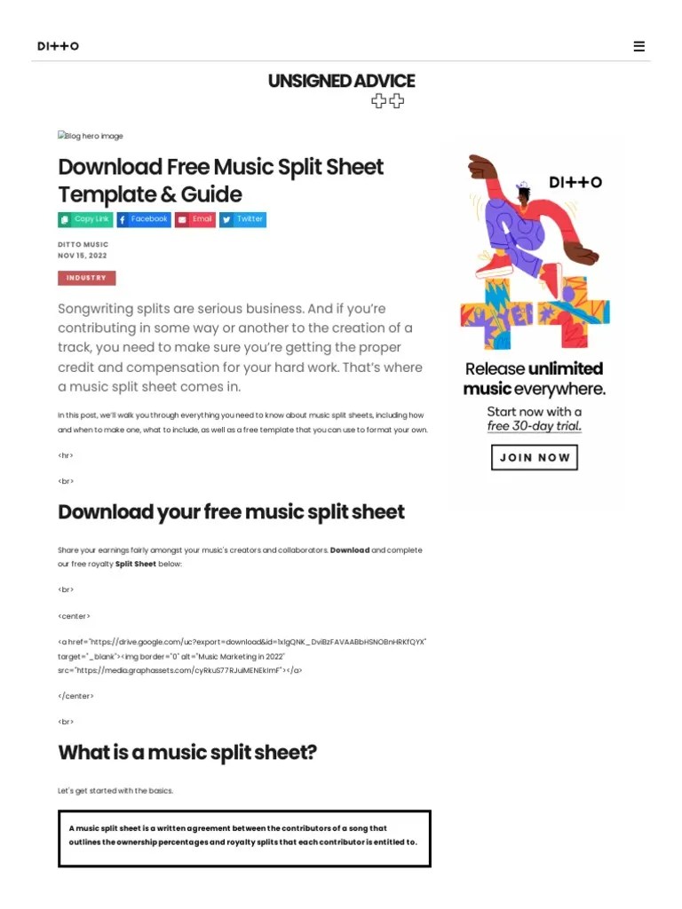 Dittomusic Com en Blog Download Free Music Split Sheet Template and