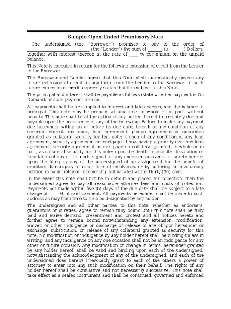 SampleOpen Ended Promissory Note Promissory Note Loans