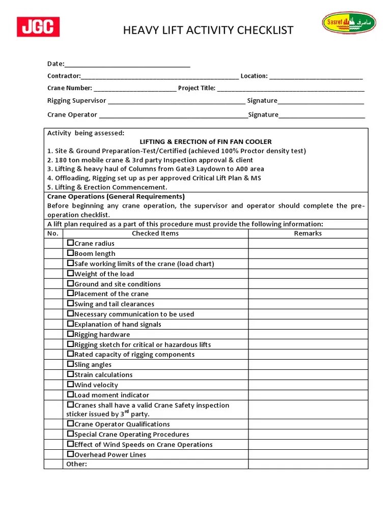 2011.06.22_Crane Operations Checklist Crane (Machine) Elevator