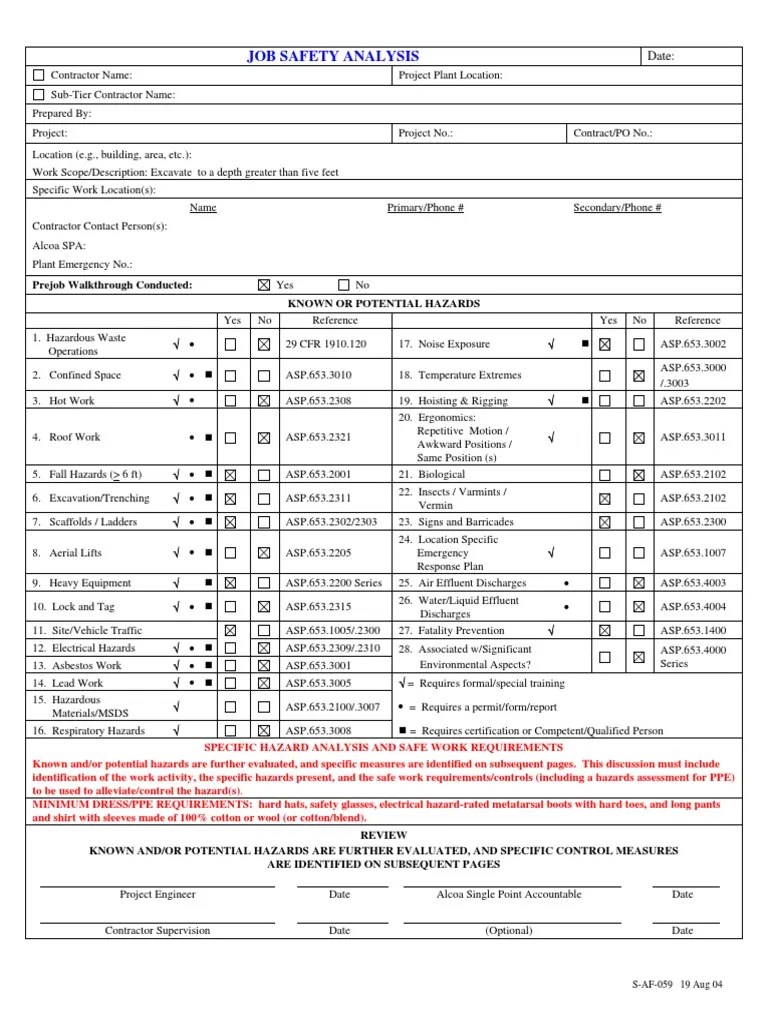 Web hazard assessment and job safety analysis there are many definitions for “hazard” but the more common definition when talking about workplace health and safety is: The following templates must be used for national office alliance agreements, regional and area office alliance agreements, and. Web *sample jsa template and example attached. Web the occupational safety and health administration (osha) defines.