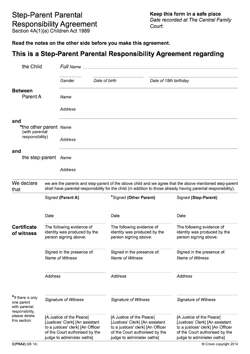 C(PRA2) StepParent Parental Responsibility Agreement (Section 4A(1)(a