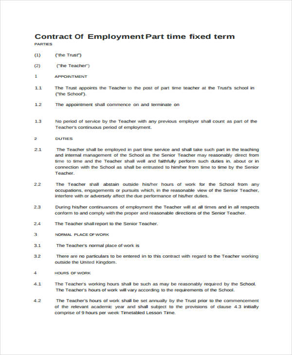 ( for a fixed term contract for a period of * day(s) /week(s) / month(s)/ year(s),. Duration of employment, if applicable 2. Web sample part time employment agreement [ this agreement differs from the full time employment agreement in that it does not provide benefits to employees ]. Apply to dog daycare attendant, dentist, warehouse associate and more!