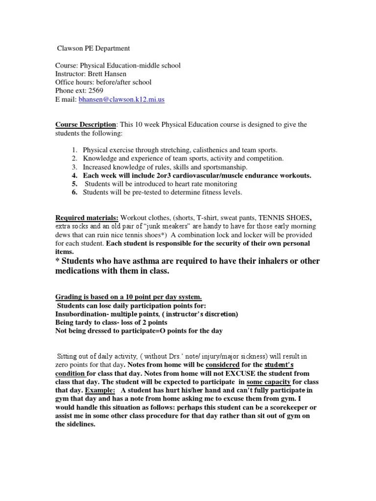 Middle School Pe Syllabus PDF Physical Education Physical Exercise