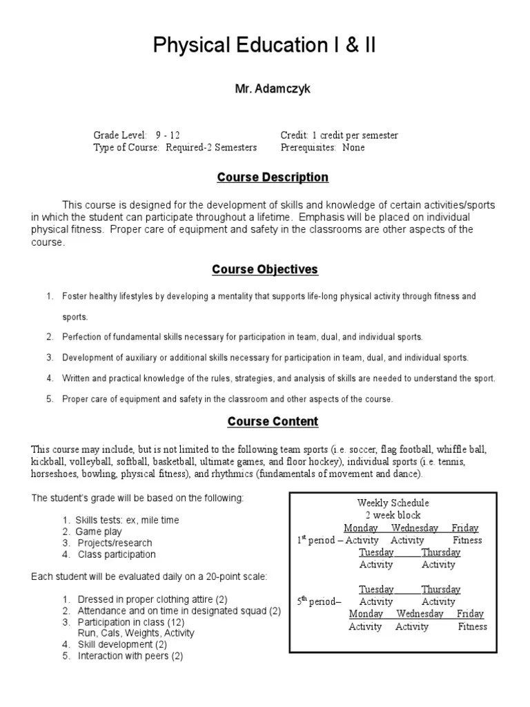 Web pe syllabus template by coach smith's store free google docs™ using this syllabus example, you can add, subtract, or edit as necessary to meet your classroom needs. Physical education is a class where students will develop overall personal fitness by exercising, developing skills, and. 1.) do a basic overview of the entire year on one page, this is what.