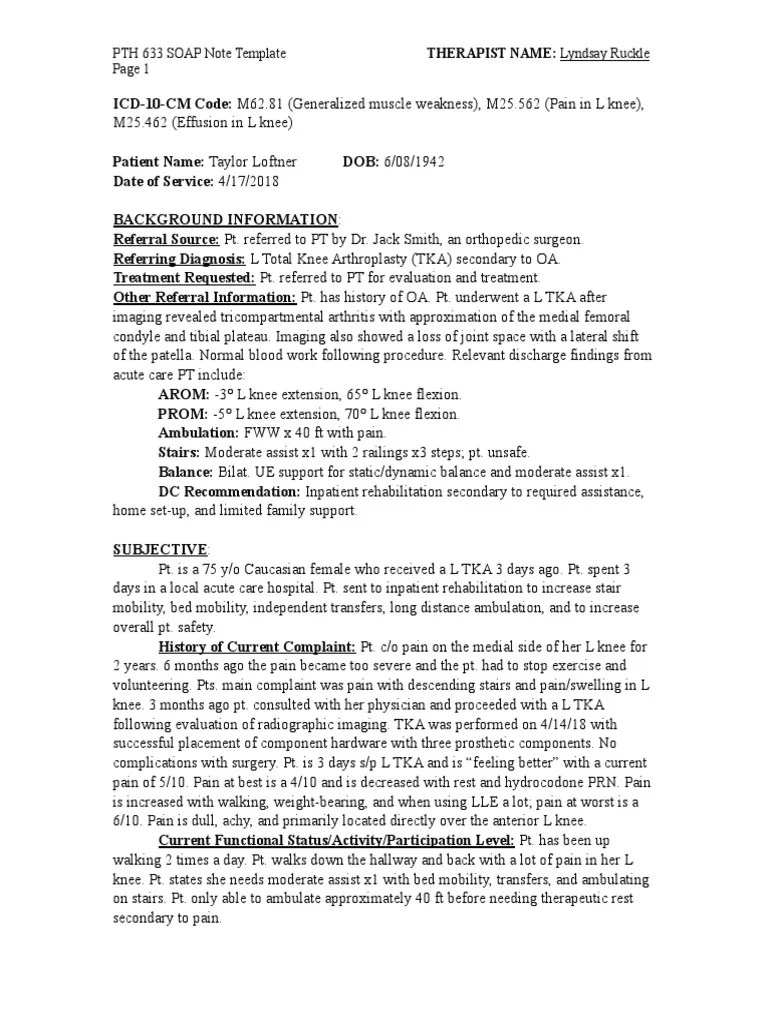 soap note subacute tka Knee Anatomical Terms Of Motion