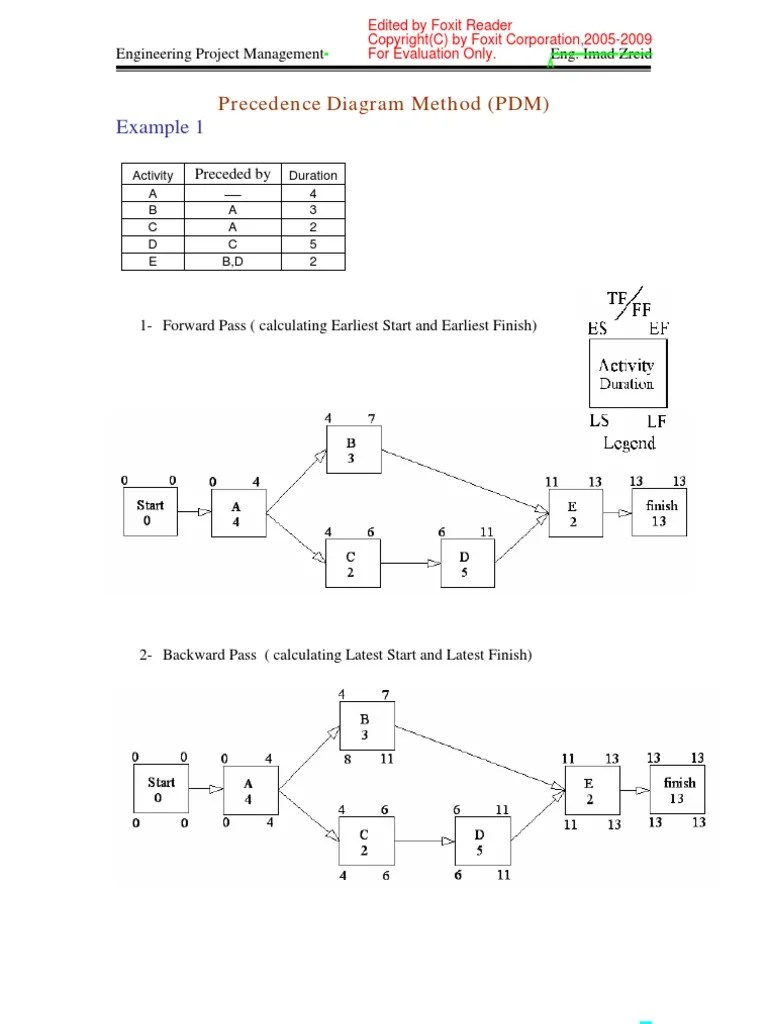 Precedence Diagramming Method Example Precedence Diagramming Method PDM