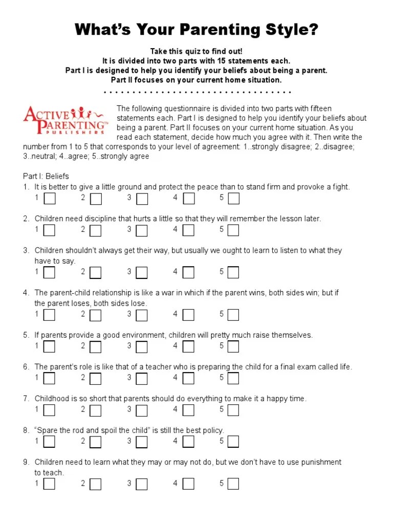 Whether you’re a teacher or a parent yourself, use this free parenting. Part i is designed to help you identify your beliefs about being a parent. Web this parenting style quiz and overview will help you assess where you are at in terms of parenthood and how you can make changes to adhere to a more “ideal”. A sample parenting.