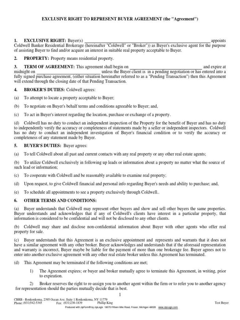 Exclusive Right to Represent Buyer Agreement Real Estate Broker Justice