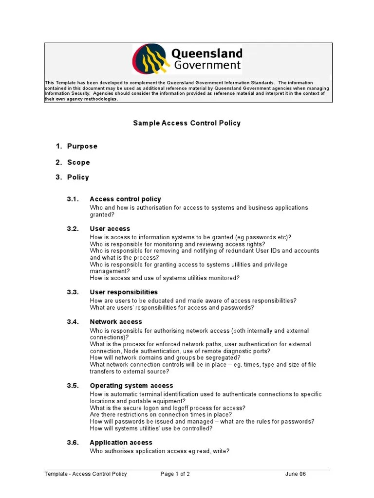 Sample Access Control Policy 1. Purpose 2. Scope 3. Policy