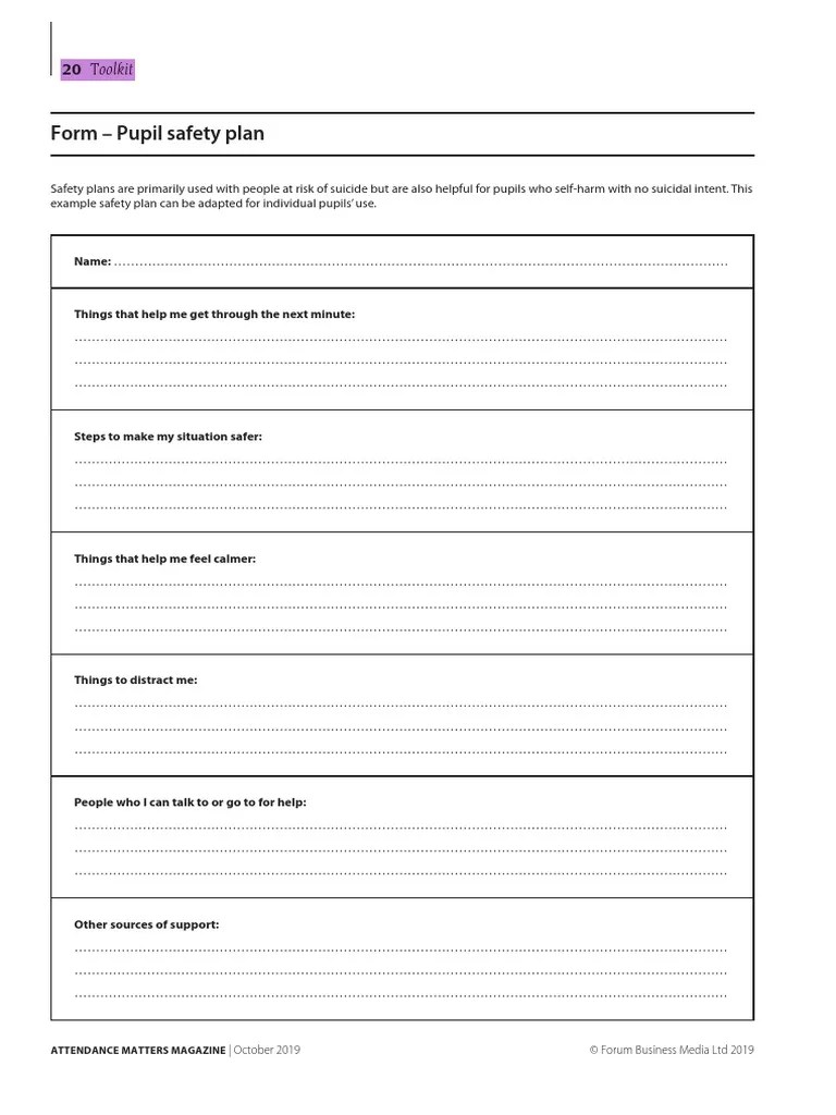 Pupil Safety Plan Self Harm Psychology & Cognitive Science