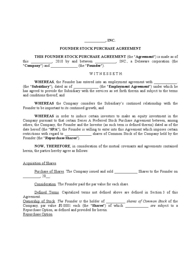 Founder Stock Purchase AgreementTemplate1 Securities Act Of 1933